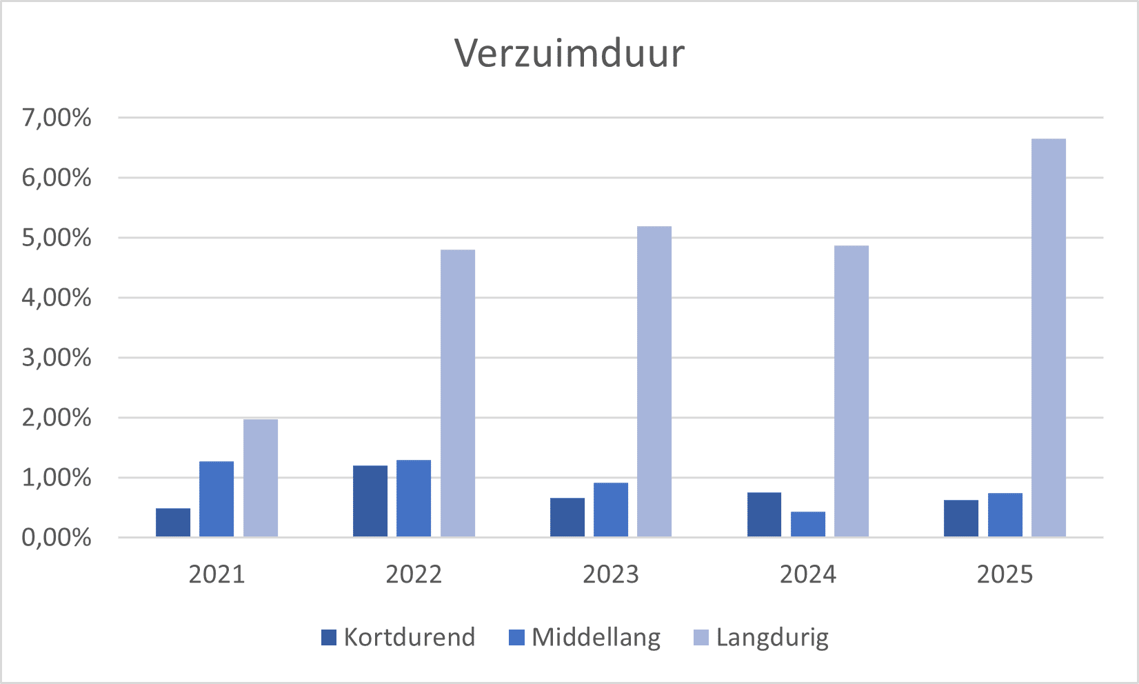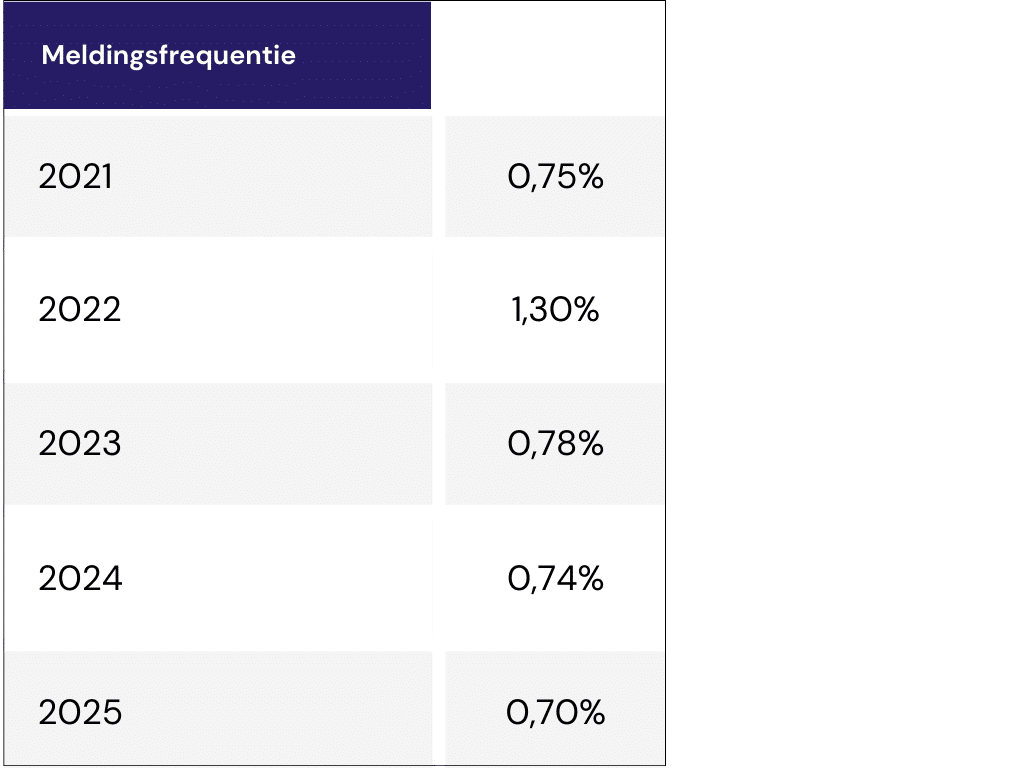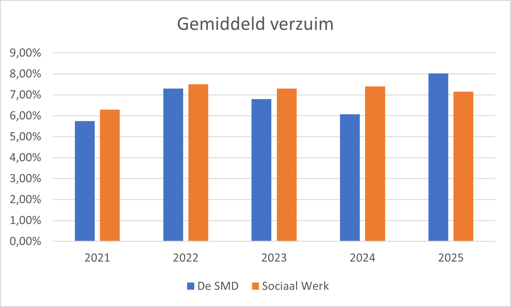 Over 2025 is het gemiddelde verzuim 8,03%. Er is een toename van langdurig verzuim als gevolg van een disbalans tussen werk en privé. Ondanks deze stijging zijn er positieve signalen: sinds 2021 was de meldingsfrequentie in 2025 het laagst. Het aantal 0‑verzuimers is opvallend hoog, dit duidt op een sterke inzet op aanwezigheid en duurzame inzetbaarheid. Collega’s hebben een hoog verantwoordelijkheidsgevoel en hoog teamgevoel.