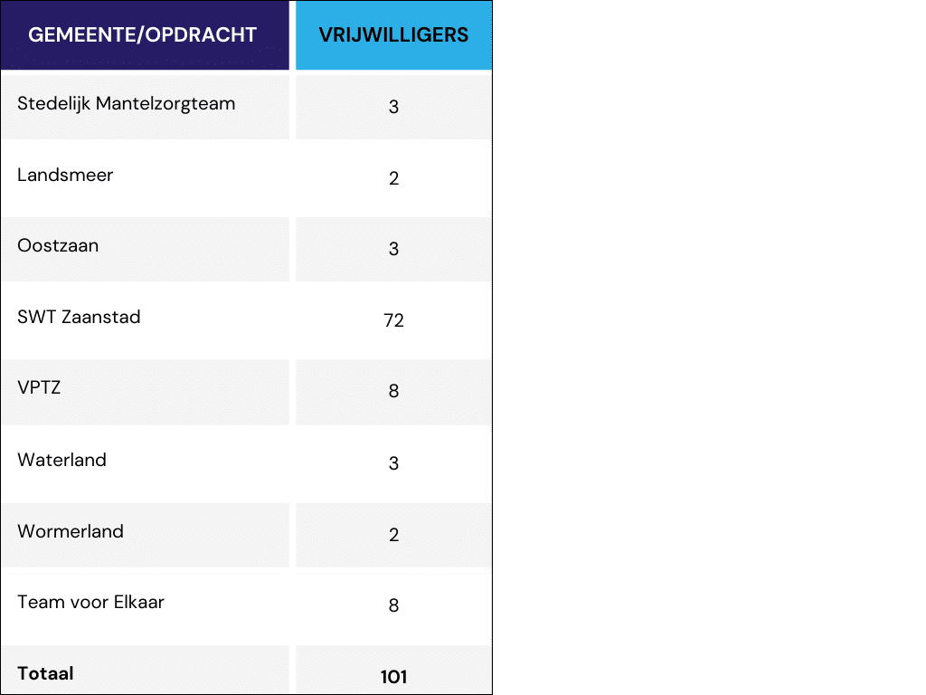 - Respijtvrijwilligers die tijdelijk de mantelzorger vervangen. De zorg voor de naaste is in goede handen, zo heeft de mantelzorger even tijd voor zichzelf en kan de batterij opladen;
